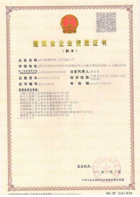 四川騰耀建筑工程有限公司(以下簡稱:四川騰耀)成立于2010年1月,注冊資金1168萬元,員工98人,其中各類注冊工程師62人(次),含高級職稱人員20人中級職稱人員42人,各類評標專家15人,既有較強的專業知識,又有豐富的實踐經驗;擁有各類設備200余臺(套)。